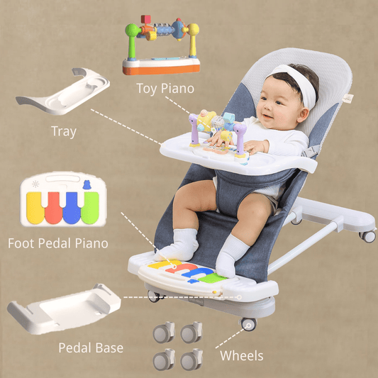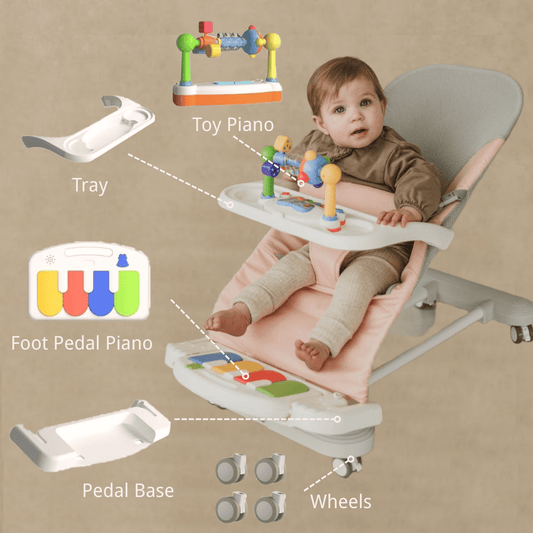 3 level adjustable tray and wide non-slip pedal to support baby's posture.