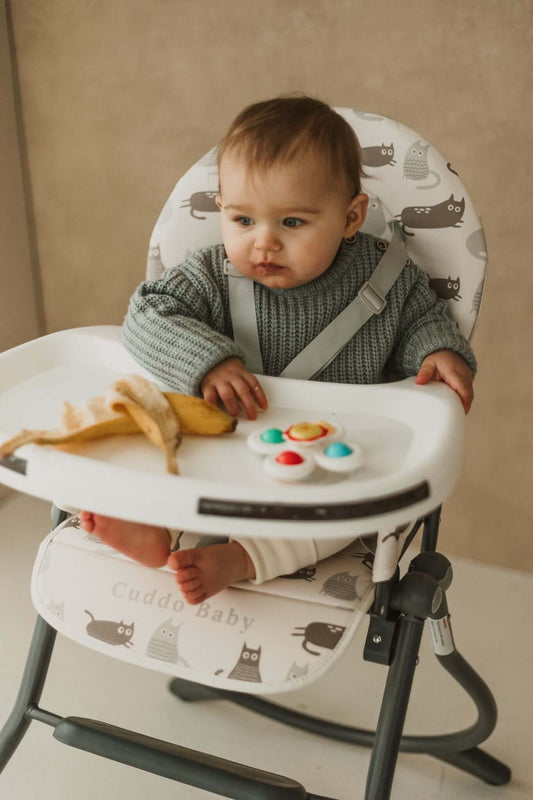 The Purrfect Highchair is a companion in your baby's eating milestones.