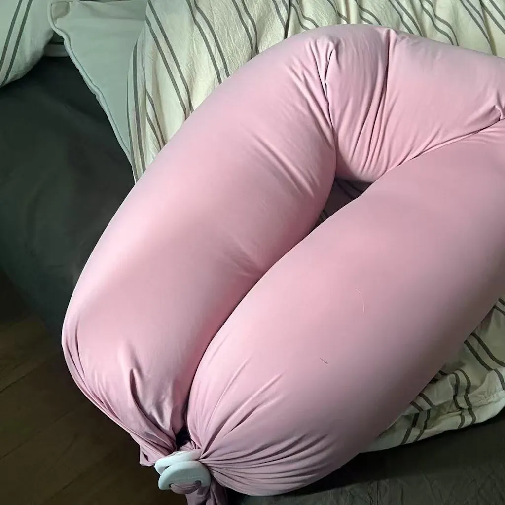 The U-shaped pregnancy pillow gives 360° support for your back and belly, while the C-shaped pillow is more compact and perfect for smaller beds. Our 5 in 1 pregnancy pillow combines both — adjustable into U, C, or wedge form depending on your sleeping needs.
